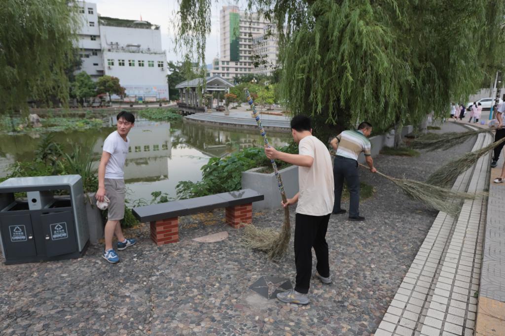 启动仪式结束后,各二级学院有序组织参会师生到本学院公共卫生区域开展劳动。王斌带领机关职能部门积极投入到学校卫生清理劳动。
