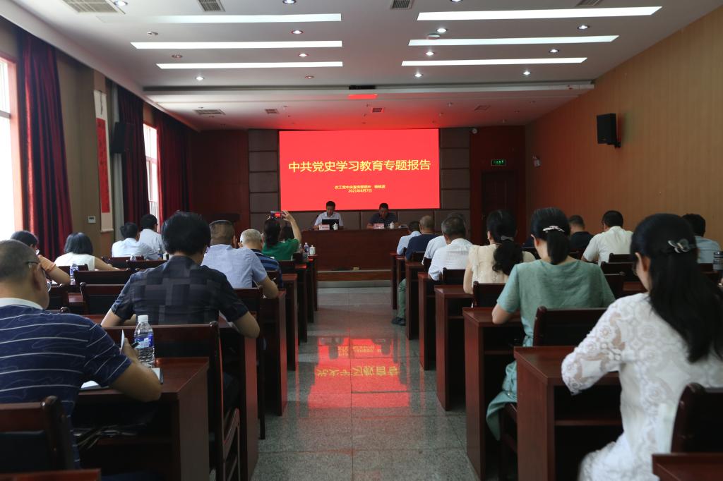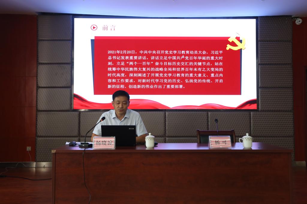 杨晓波作《中共党史学习教育专题报告》,回顾了中国共产党成立至今的百年辉煌历程,用一个个鲜活的事例,再现了中国共产党团结带领全国各族人民从站起来到富起来、再到强起来的伟大奋斗史。报告指出,开展中共党史学习教育,是持续深入学习贯彻习近平新时代中国特色社会主义思想的必然要求、是坚持好发展好完善好我国新型政党制度的应有之义、是加强中国特色社会主义参政党建设的重要举措;要全面了解中国共产党百年奋斗的光辉历程和历史性贡献,就要认真研读关于中国共产党党史的基本著作;坚持学思用贯通、知信行统一,不断用中国共产党的创新理论武装全党教育人民,推动习近平新时代中国特色社会主义思想深入人心,落地生根,铸牢全体人民团结奋斗的共同思想基础。报告强调,“征途漫漫,惟有奋斗”。百年只是序章,未来必将可期。站在历史和未来的交汇点上,新的伟大征程正在我们面前展开,我们要更加紧密地团结在以习近平同志为核心的党中央周围,以更加坚定的决心、更加昂扬的姿态,开启新征程、奋进新时代,以优异的成绩庆祝中国共产党建党一百周年。
