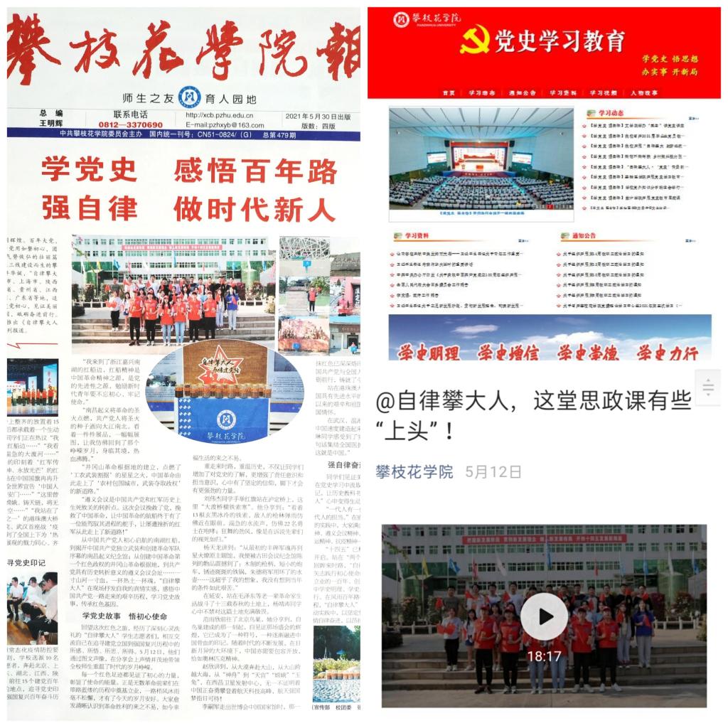 学校对标对表中央、省委和省委教育工委部署,把准宣讲重点,把牢正确方向。专题宣讲全覆盖。开展“追忆百年辉煌,践行初心使命”系列讲座20场、“五老”专题宣讲5场、“面对面”“键对键”宣讲10余场,老党员、老同志和先进典型作主题报告15场,“网上重走长征路”暨推动“四史”学习教育活动实现全覆盖。抓好青年学习教育。围绕党史学习教育组织青年大学生积极参加“青年大学习”网上主题团课;14000多名青年学子“同上‘四史’思政大课”;组织开展“讲‘党史’故事•做自律攀大人”宣讲、“党史我来讲•红色照我心”演讲比赛、“峥嵘岁月•光辉历程”观影活动、“自律攀大人‘党史’情景剧”等活动,把党史故事、革命精神、红色基因融入学习中,引领师生学党史、悟思想、感党恩、跟党走。