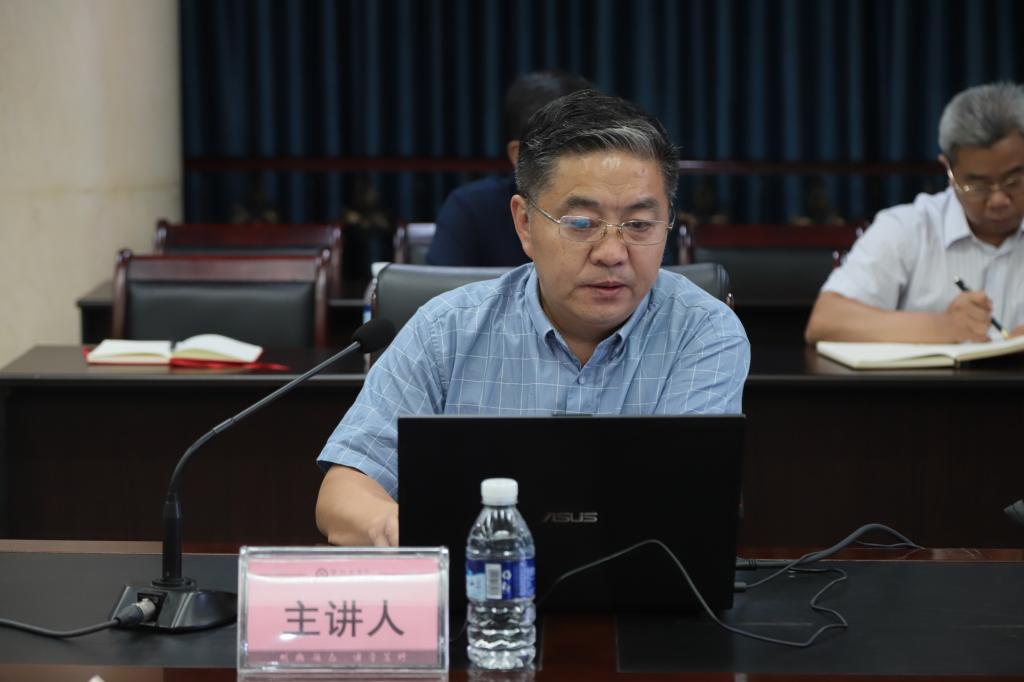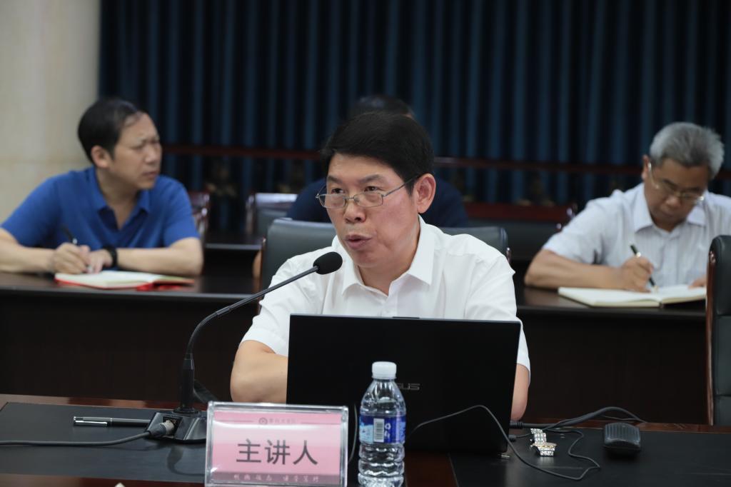 省纪委监委驻88038威尼斯纪检监察组组长、党委副书记、纪委书记彭徐用数据分析学校现状,明确学校存在的差距,提出学校发展要融合创新、整合资源,打造学科特色品牌,狠抓教学、科研质量,努力提升综合水平。