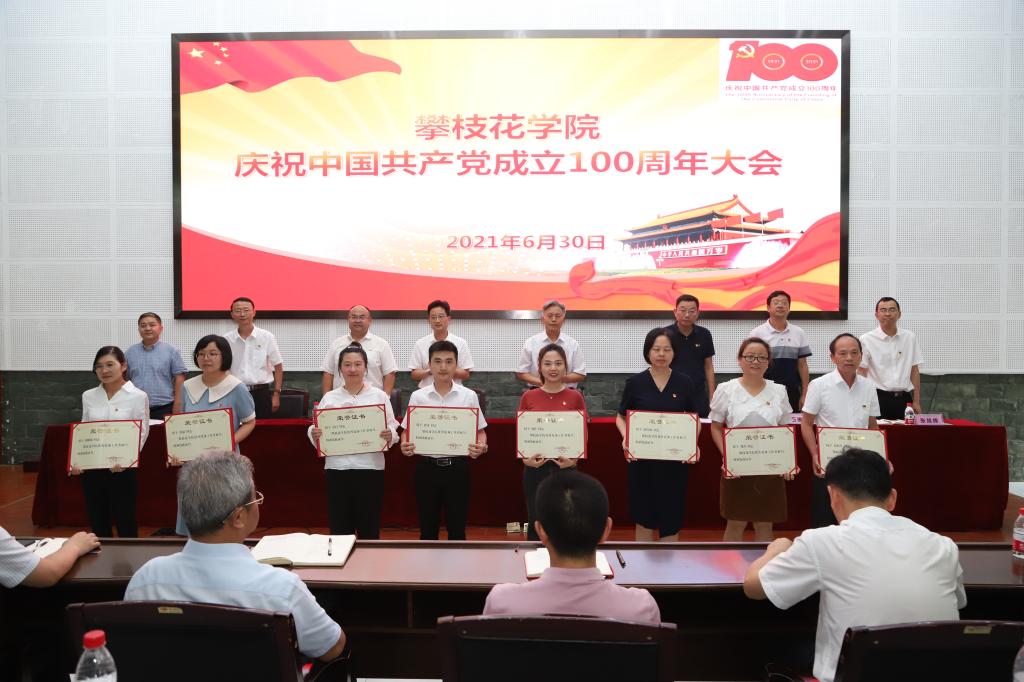 大会对表现突出的40名优秀共产党员、15名优秀党务工作者、 5个先进基层党组织,以及市优秀共产党员、优秀党务工作者和先进党组织进行表彰。受表彰代表依次上台,校领导分别为他们颁奖,逐一颁发荣誉证书或奖牌。优秀学生党员代表数计学院胡涛、优秀教师党员代表生化学院刘姗、优秀党务工作者康养学院学生党支部书记张丽作为受表彰代表发言。