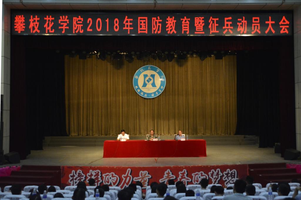6月7日下午,威尼斯官网2018年国防教育暨征兵动员专题讲座在会堂举行。攀枝花市市委常委、军分区政治委员秦光龙大校作题为《对新时代国防和军队建设的几点思考》的专题讲座,校党委书记肖立军出席并作动员讲话,学校学生处、团委等相关部门负责人及各二级学院师生代表聆听了讲座。讲座由副校长石维富主持。