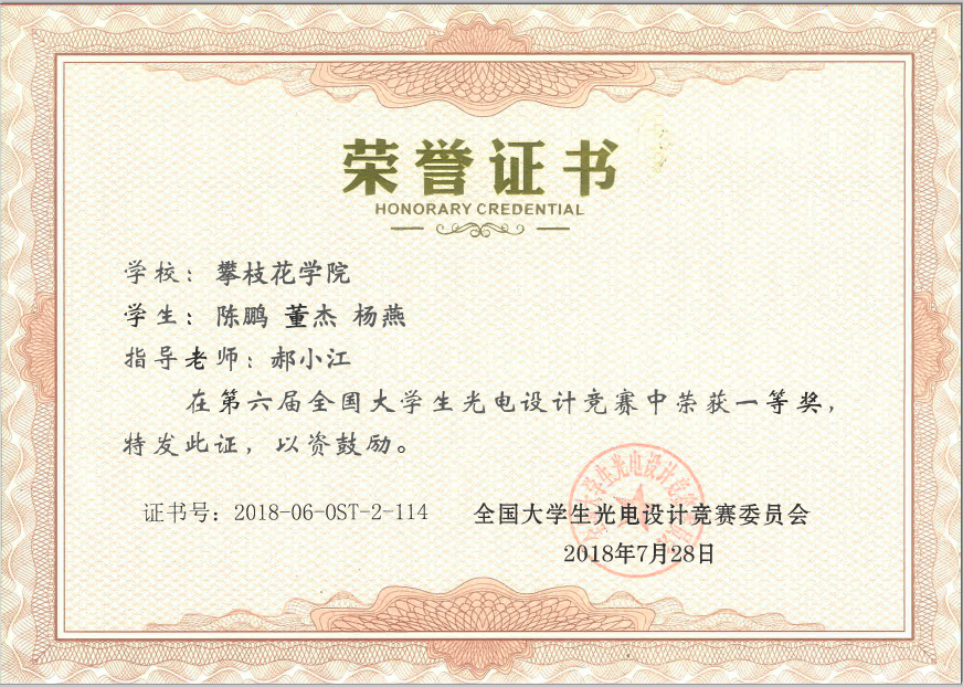 7月27-28日,第六届全国大学生光电设计竞赛在北京理工大学举行,经过单车排位赛和双车对抗淘汰赛及竞赛答辩环节,威尼斯官网组成的“飞梦队”(2017级自动化董杰、2016级自动化陈鹏、杨燕)勇夺全国一等奖,这也是四川省唯一的一个一等奖,郝小江老师获得优秀指导教师奖。