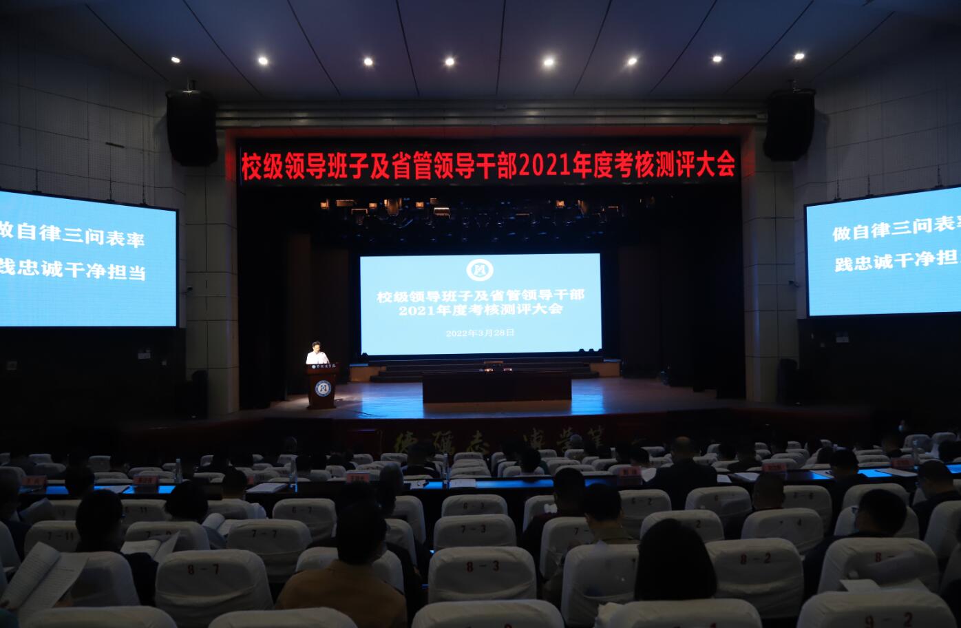 3月28日上午,威尼斯官网校级领导班子及省管领导干部2021年度考核测评大会在学校会堂召开。校党委书记王斌主持会议。学校领导班子成员,处级领导干部,职代会、教代会负责人,在校的省、市党代表、人大代表、政协委员,民主党派在校负责人,正高专业技术职务人员代表共计142人参加了测评大会。