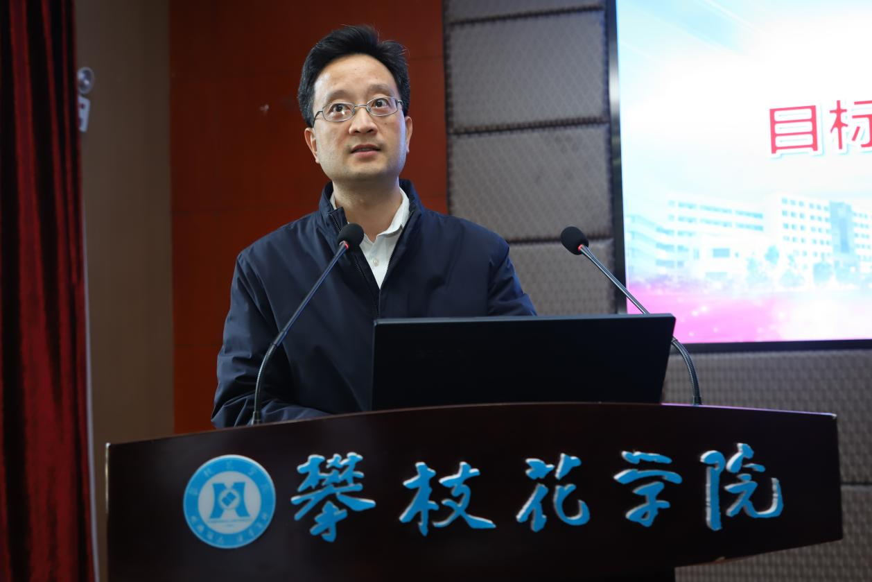 现场陈述结束后,党委书记王斌作了点评总结。他首先对年度单位目标绩效现场评议工作的方式和效果表示充分肯定,与大家一起分享了现场限时陈述的实操性技巧和心得体会,向硕果累累背后辛勤付出的攀大管理骨干表示衷心感谢。王斌希望各单位在总结成绩、丰富经验的基础上,结合发展实际,进一步开阔工作思维和视野,改进工作方式和方法,优化工作思路和举措,持续做好监督执纪“后半篇文章”、产教融合、招生就业、学报提质升级、体育教学与心理教育融合等工作,以自律、自觉、自强促发展、创一流。