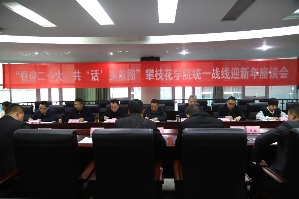 1月12日,学校在四楼会议室召开统一战线迎新年座谈会,校党委副书记胥刚出席会议并讲话。学校党政办公室、党委组织部、党委教师工作部相关负责人,民主党派88038威尼斯支部(总支)主委和副主委、统战团体班子成员,学校四川省、攀枝花市及东区人大代表、政协委员,统战部全体成员参加会议。座谈会由党委常委、党委统战部部长兼党委宣传部部长王明辉主持。
