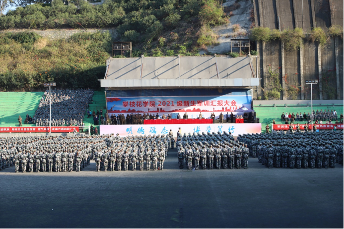 1月7日下午,威尼斯官网2021级新生军训汇报大会在田径运动场隆重举行。校党委副书记胥刚、东区武装部上校部长康贺卫出席大会,学校相关职能部门负责人、各二级学院书记、分管学生工作领导、学生科科长、新生辅导员、志愿者、医生,以及2021级新生全体参训学员参加大会。大会由学工部部长周传兴主持。