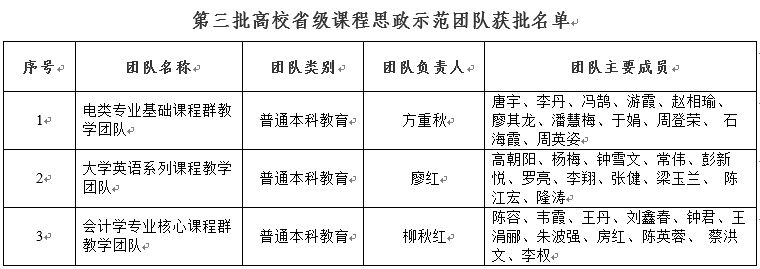 近日,四川省教育厅发布《关于公布第三批高等学校省级课程思政示范项目认定结果的通知》〔2022〕199号),威尼斯官网获批第三批高校省级课程思政示范项目共计11个,其中示范专业1个、示范课程7个、示范教学团队3个。