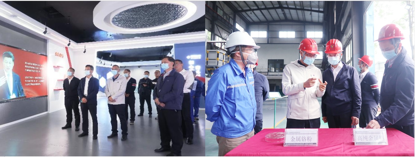 王斌一行在银河化学股份有限公司董事长肖棱的陪同下,参观了新田园区与雎水园区的硫酸项目、万吨金属铬项目、水处理中心、脱气铬生产线、国家级企业技术中心和公司文化展馆等,并参加了首届铬应用化学英才班毕业论文答辩会。