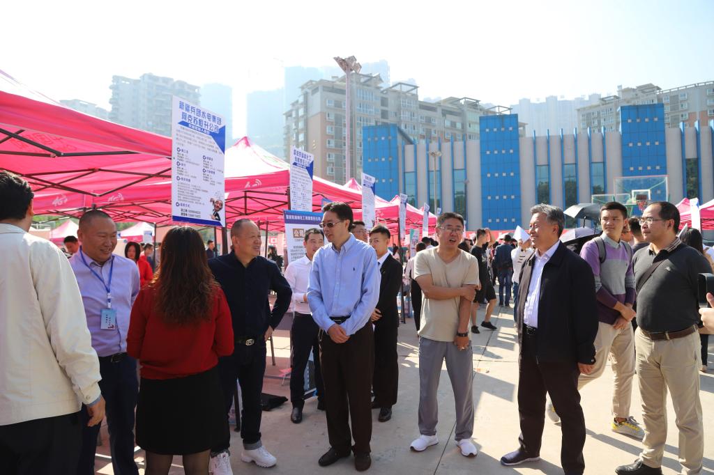 校党委书记肖立军,党委副书记、校长王曙光,副校长石维富,攀枝花市人力资源和社会保障局局长陈建新,副局长蔡雪梅,攀枝花市就业局局长袁铁峰莅临现场指导,了解双选会进展情况,并与在场师生亲切交流,了解学生的就业意愿和应聘情况。肖立军一行还与部分用人单位就人才市场的需求状况、对威尼斯官网办学及毕业生的评价等情况进行了交流,并希望各用人单位能多吸收新鲜血液,帮助威尼斯官网学生成长,助推用人单位发展。