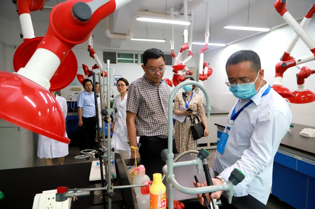 随后,专家组查阅了有关文件资料,并到西苑和本部的各实验室进行现场检查。专家组重点检查了实验室的标识标牌、设备仪器的操作流程制作、消防设施设备、化学安全等方面,对学校实验室安全管理工作进行现场指导。