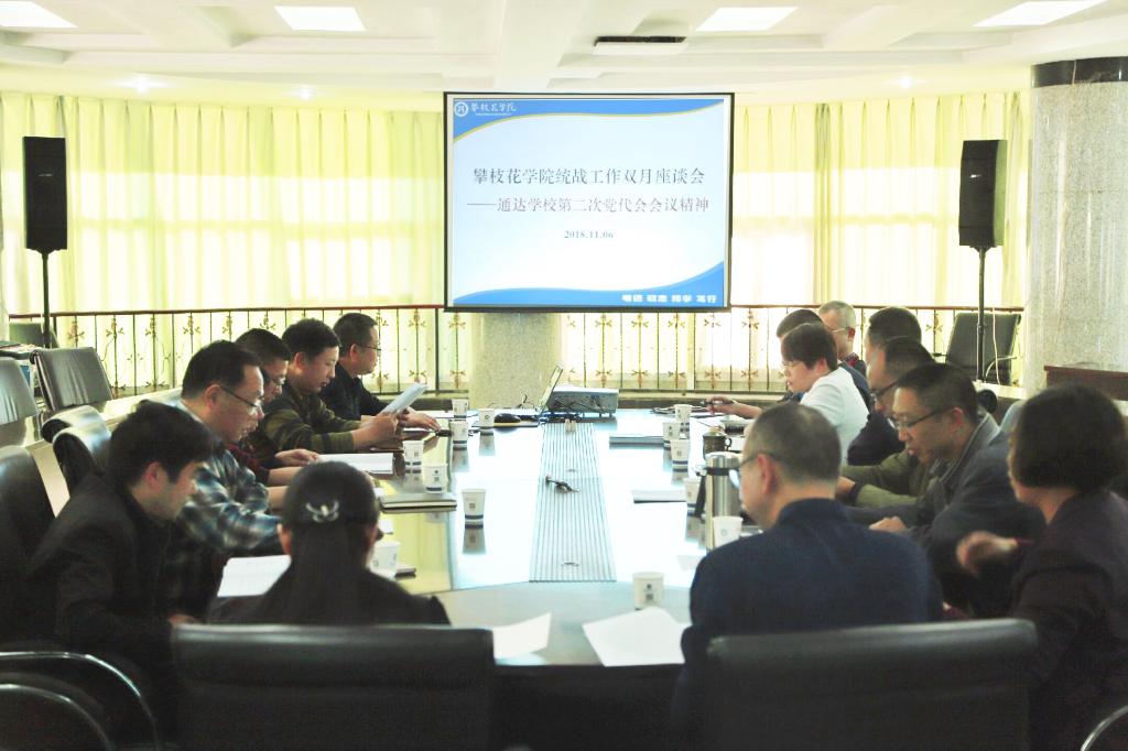 11月6日下午,威尼斯官网在办公楼五楼会议室召开了统战工作双月座谈会,向党外人士通报学校第二次党代会会议精神。校党委副书记胥刚出席并讲话,学校副县级以上党外干部、各民主党派主委、副主委、各统战团体负责人参加座谈会。会议由统战部常务副部长肖国玉主持。