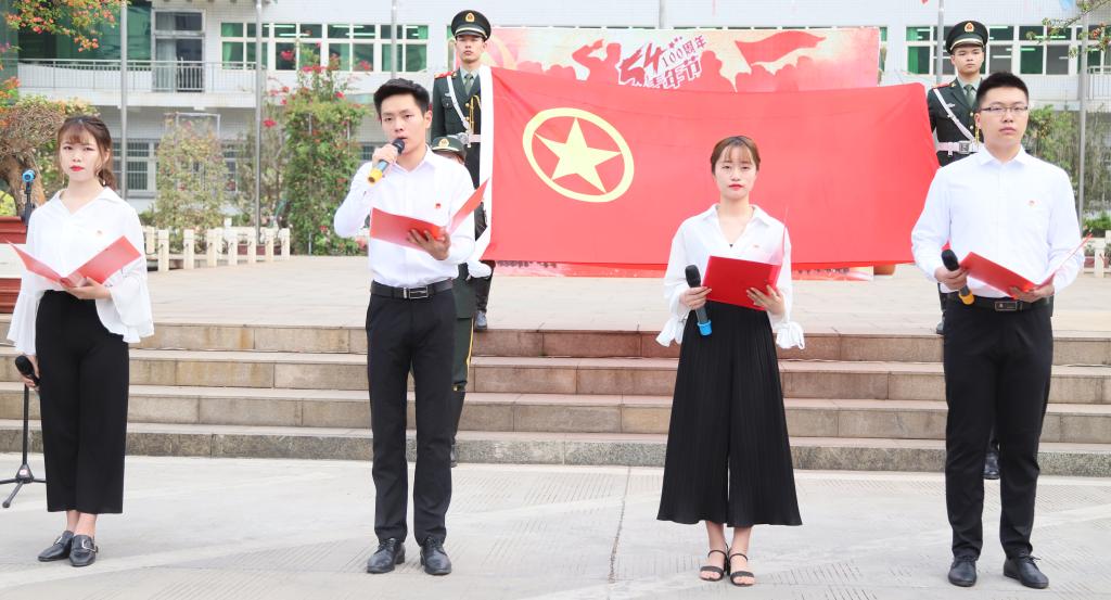 4月29日上午,威尼斯官网在阳光广场举行“青春心向党·建功新时代”纪念五四运动100周年特别主题团日活动。活动包括升旗仪式、现场讲授微团课、团员学生代表献词朗诵、入团宣誓等内容。学校党委副书记、校长王曙光出席活动并为新团员颁发团员证。学校党委副书记、纪委书记彭徐出席活动并讲话。