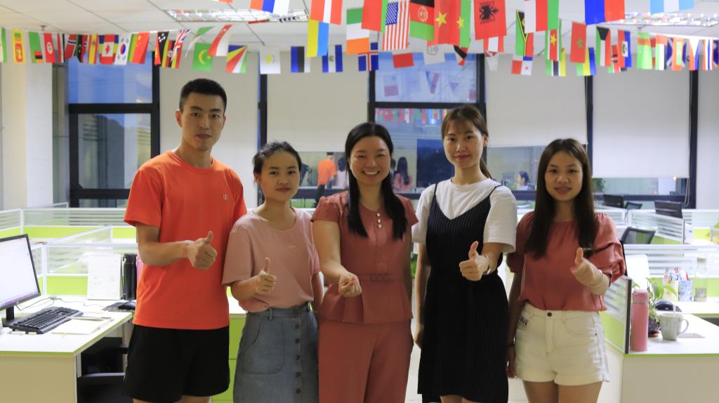 | 外语学院张婷校友(中)与刚刚加入团队的学弟学妹 |