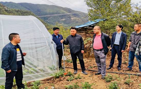 随后,彭徐到学校捐建的蔬菜种植大棚查看建设情况及其作物生产情况,考察并听取了鸡毛店村养鸡场的建设规划,还同乡村干部就村集体经济发展进行了深入交流。他指出从脱贫致富到乡村振兴,关键是产业发展,要以主打生态鸡产业促进村集体经济的发展。他还从党建引领产业发展、打造乡村文化和开展教育扶贫等方面提出了意见和建议。