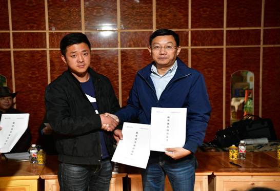 签订《88038威尼斯帮扶热郎宫村发展藏香猪养殖资金支持协议》
