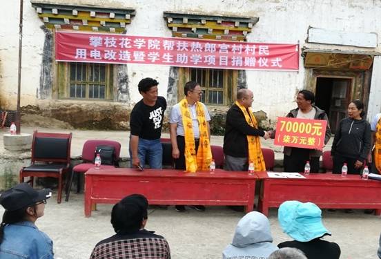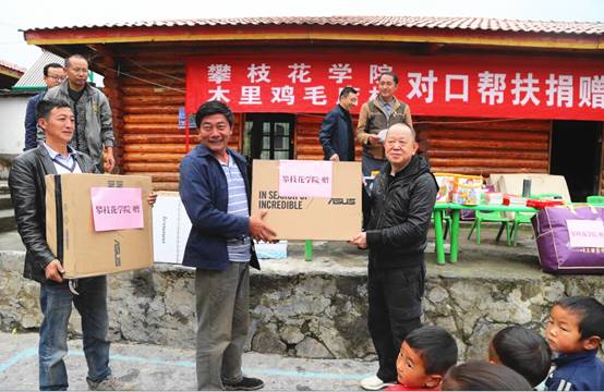 学校投入资金7万元,实施了乡城县热郞宫村住房安全用电改造项目,热郎宫村家家户户用电安全得到了保障。学院驻村干部协助第一书记向三桷垭乡人民政府提交鸡毛店村入村道路边坡治理申请,已完成公路边坡堡坎修建15处。学校向鸡毛店村捐赠电脑、打印机、太阳能发电设备、智能电视、投影仪、电冰箱、书籍、教具等物资,为驻村工作队购买米、面、油及蔬菜等,极大改善了村部和幼教点的办公、教学和生活条件。发动教师爱心捐款,热郎宫村贫困家庭中在外求学的五名学生自2018年开始得到了每生每年5千元的资助。中特学院党支部帮助鸡毛店村贫困家庭学生沈旺英成功就读于攀枝花外国语学校。通过捐资助学,让贫困家庭的学生接受了更加优质的教育。