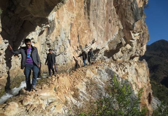 扶贫干部谢萍(前一)和纳子店村干部一道翻山找水源