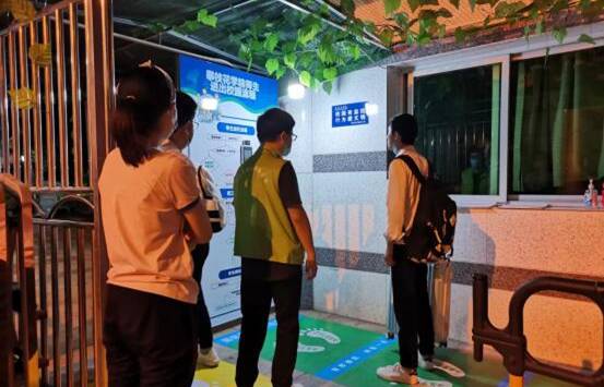 志愿者引导学生排队检测