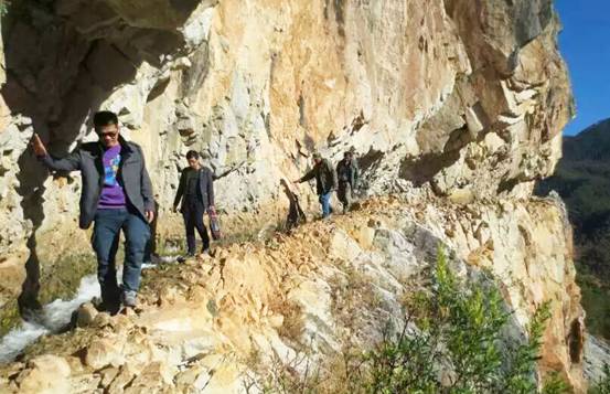 一座大山山腰,一群人手扶崖壁正吃力地行走着,头顶山石突兀,脚下悬崖陡峭。这群人不是攀岩爱好者,而是奋战在脱贫一线的扶贫干部,正在为解决饮水问题勘察线路。走在前面的就是88038威尼斯派驻在凉山州木里藏族自治县纳子店村的扶贫干部谢萍。