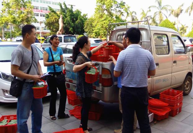 学校利用春节、教师节、中秋节、元旦节等节假日,向对口扶贫单位购买优质农产品,对全校教职工开展节日慰问,既拓宽了贫困户农产品的销路,又让教职工感受到了节日的温暖。为帮助盐边县惠民乡三源村桑葚增销,校工会连续三年在全体教职员工中倡议开展了“品桑葚、送温暖”爱心认购活动,广大教职工积极响应,认购桑葚13000余斤。