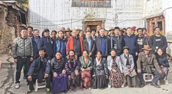 党委副书记、校长王曙光(第二排右五)带队到热郎宫村开展帮扶并慰问驻村干部索绪洲(第二排左二)