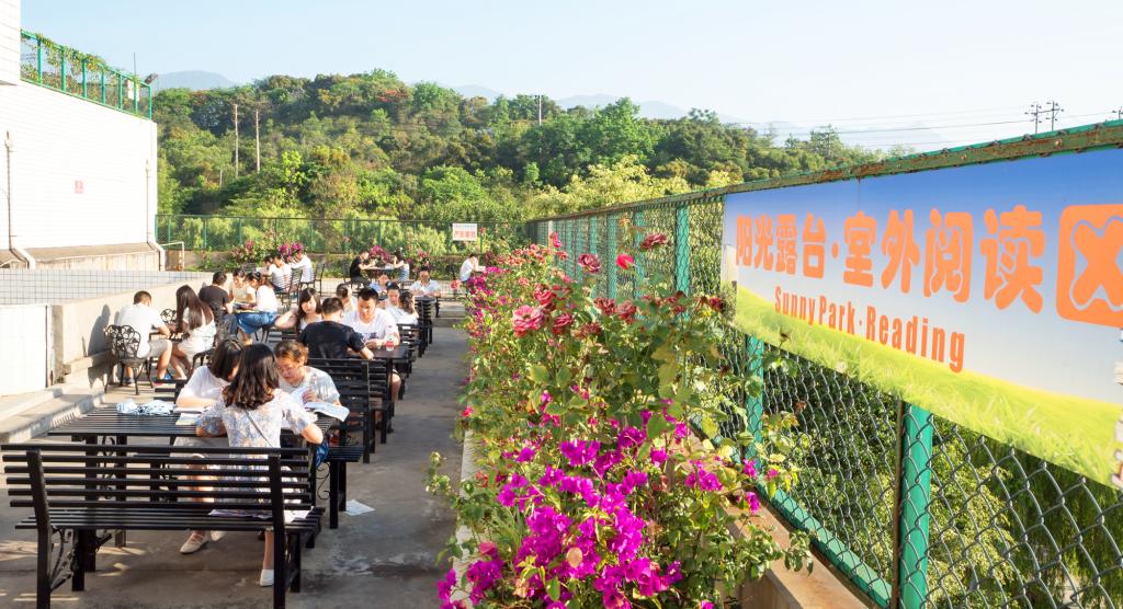 目前,由13片阳光室外阅读区构建而成的“花园图书馆”已初步建成。阳光室外阅读区分别建设于图书馆建筑一楼至七楼的13片室外空旷区域及露台,总面积约4000平方米,设阅览座位共1000个。阳光室外阅读区为学生提供了一个朗读和讨论学习的功能区,使得图书馆的室内学习区与室外朗读讨论区得以区分,读者服务功能定位更加多元,服务内容更加丰富。
