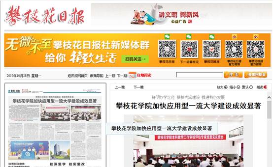 《攀枝花日报》报道威尼斯官网应用型一流大学建设成效
