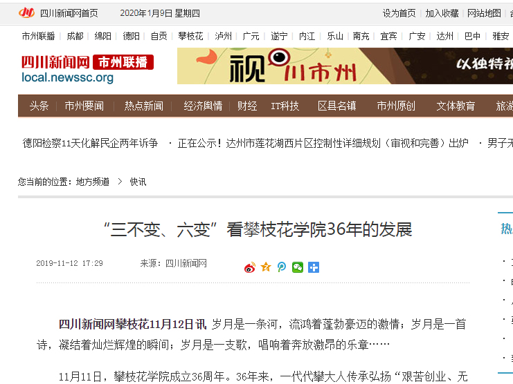 发展才是硬道理,讲好学校发展故事是宣传工作的"重中之重"。一年来,我们聚焦主题教育,讲好攀大人坚守教育报国初心、勇担立德树人使命的故事;聚焦“中兴班”、“华为班”、“金蝶班”,讲好产教融合的故事;聚焦连续三年位列《广州日报应用大学排行榜》全国100强,讲好应用为先的故事;聚焦高质量通过本科教学审核评估工作回访,讲好加快应用型一流大学建设的故事;聚焦全国“互联网+”喜获银奖,讲好人才培养的故事。今年是新中国成立70周年,也是学校建校36周年,在 "三十六载再出发"的特别报道中,我们推出了《从“三不变、六变”看88038威尼斯三十六年的发展》、《三十六载再出发,与国同行新时代》等一系列专题报道,联合艺术学院拍摄了第一部动漫作品,全方位、多角度、立体化展示了办学36年的丰硕成果。评论中有人这样说到:“如今的攀大是不断奋进着的攀大,是不断发展的攀大,他的发展日新月异,他的变化显而易见,他的成效硕果累累”。