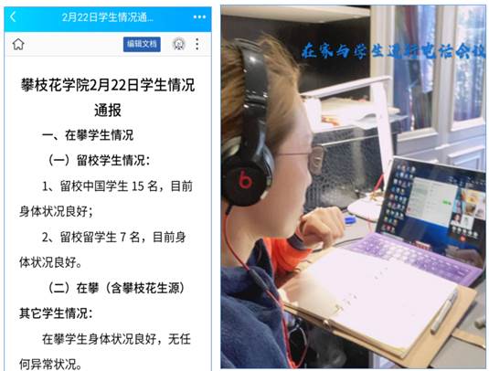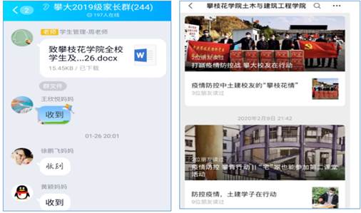 心系学生,不负使命。辅导员们针对学生的实际学习、生活、工作需求,通过多种途径做好学生的假期教育管理。比如外国语学院的何旋老师运用“辅导员云课堂”,开好云班会,做好学生思想教育工作;土建学院的陈智老师给予学生寒假生活温馨提示、学习指导、就业指导,鼓励学生主动参加网络主题教育活动,让学生进行在线课程学习,做到“停课不停学,学习不延期;艺术学院的罗钧梅、钒钛学院安昀、人文学院赵燕、土建学院的刘瑞峰老师等以身作则,承担社会责任,投身于志愿服务,引导学生积极面对疫情,传递爱的声音;发挥朋辈榜样力量,威尼斯官网多名学生也在当地作为志愿者贡献力量,他们在抗疫行动之中践行青年的使命与担当,也让这个“加长版”的假期充满温暖。