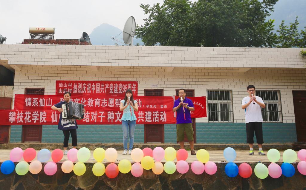 自2015年以来,学校科普文化宣传志愿服务队坚持每年赴米易仙山村开展“送科普,种文化”下乡活动,参与志愿者超过200人次,活动形式多样,群众乐于参与。通过开设农业种植技术讲座、地间种植指导、科普资料发放、展板宣传、现场答疑等方式为当地民众送去了科普知识、种养技术、食品安全常识、涉农法律常识等,拓宽了群众的文化视野。通过义诊、健康咨询、急救知识讲解和急救演示向群众传授医疗健康知识和急救技能。为群众表演歌曲、舞蹈、朗诵、乐器演奏等文艺节目,为村民、学生讲解素描、彩绘等绘画基础知识,现场为群众画像,增加了群众的文化艺术兴趣,提升了他们的精神文化生活品质。