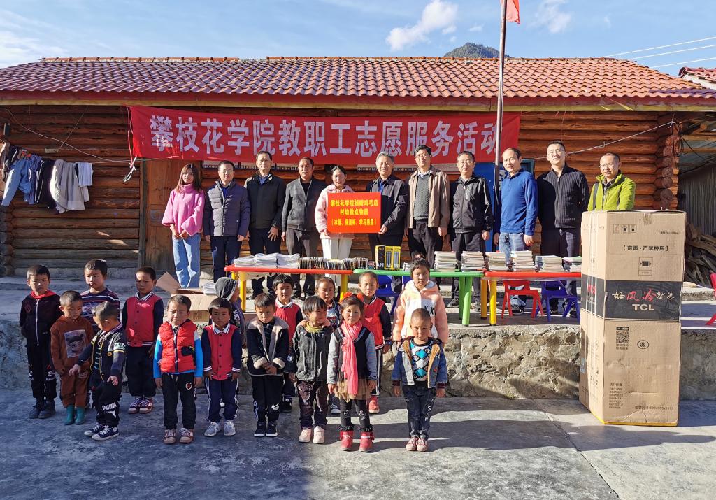 学校领导率先示范,分别多次带队到对口帮扶地区开展志愿服务。在凉山州木里县瓦厂镇纳子店村、木里县三桷桠乡鸡毛店村、甘孜州香巴拉镇热郎宫村、攀枝花市米易县仙山村,了解贫困户的生产生活情况,指导他们开展脱贫工作,并送去粮油、棉被等生活物资以及帮扶资金,增进了与群众的情感交流;为鸡毛店村村部和幼教点送去电脑、打印机、智能电视、投影仪等物资,改善了村里的办公、教学和生活条件;通过捐资助学,帮助鸡毛店村贫困家庭学生沈旺英成功就读于攀枝花外国语学校,热郎宫村贫困家庭中在外求学的五名学生自2018年开始得到了每人每年5千元的资助,让贫困家庭的学生进一步接受优质教育。