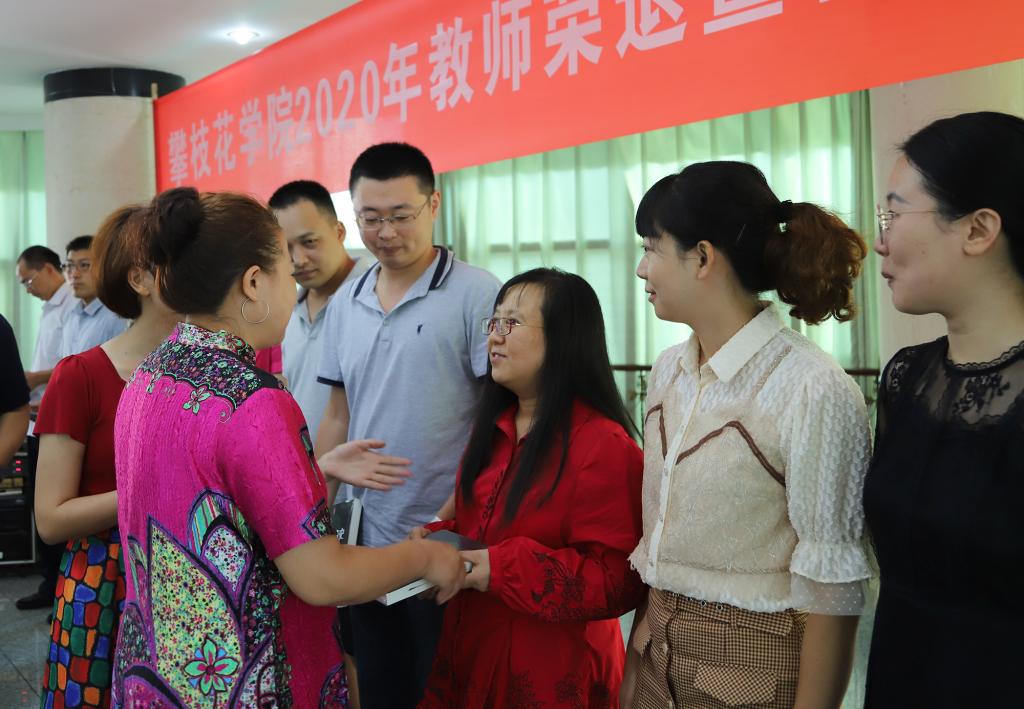 与会领导向荣退教师颁发了荣誉证书、赠送了纪念品,荣退教师向新入职教师赠送了书籍,新入职教师向荣退教师敬献鲜花。