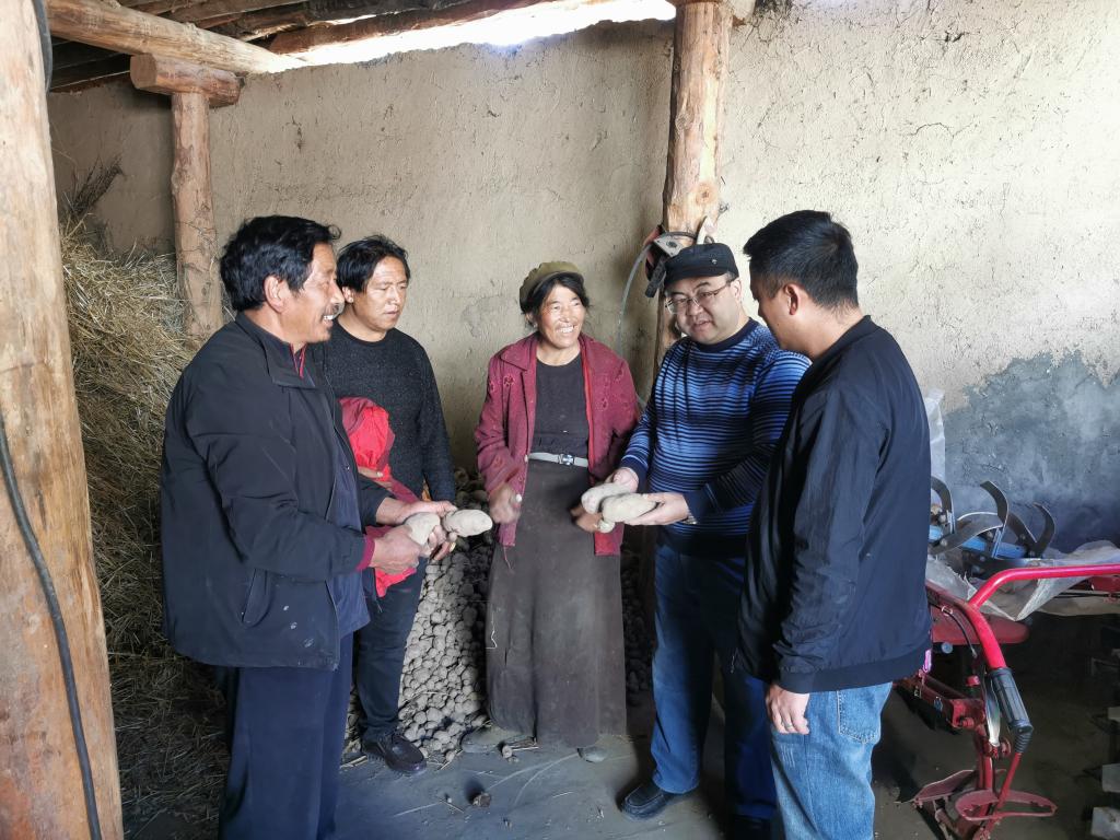 25日,彭徐带队到热郎宫村开展扶贫工作,走访看望了贫困户和捐资助学对象,带去了学校的温暖。彭徐一行还专程走访了解学术帮扶土豆的收成情况,通过实地考察,了解到热郎宫村试种的马铃薯亩产量达到4000斤,每亩比去年增产600-800斤,试种马铃薯获得成功,得到当地百姓的一致认可。