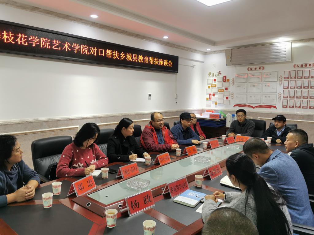 10月24日下午,不顾路途的疲惫和高原反应,彭徐一行与乡城县教育和体育局开展了88038威尼斯艺术学院对口帮扶工作座谈会,就艺术学院对乡城县开展技能培训和校园文化打造进行了交流。乡城县教体局负责人对88038威尼斯一直以来的帮扶工作表示感谢,并表示参加了2019年音乐、美术培训的教师在今年乡城县举办的中小学艺术节中大放异彩,前期墙绘工作也受到了各个工作组的称赞。彭徐提出,此次校园文化打造要与乡城特色文化相结合,培训教师要认真备课、上好每堂课,保质保量完成培训任务;下一步工作要向乡村振兴、文化振兴方向发展。