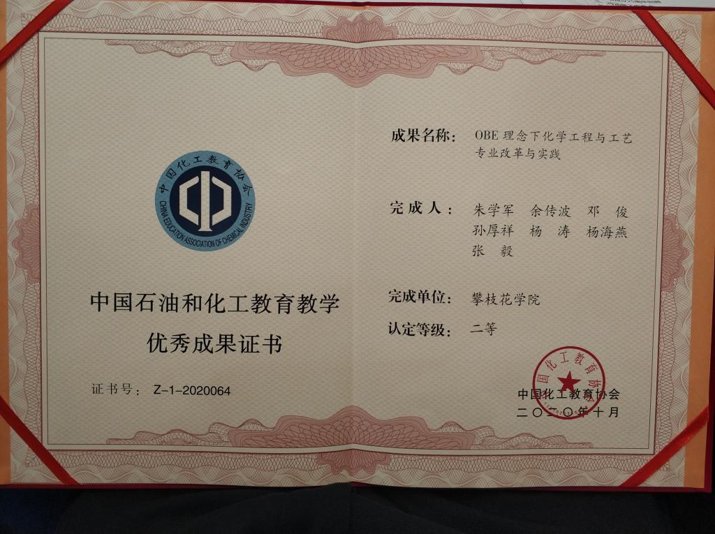 10月30日,中国化工教育协会主办的2020中国化工教育年会(EduChem2020)在湖南省长沙市召开,现场颁发了第五届中国石油和化工教育教学优秀成果奖,威尼斯官网生化学院朱学军教授主持的《OBE理念下化学工程与工艺专业改革与实践》荣获二等奖。