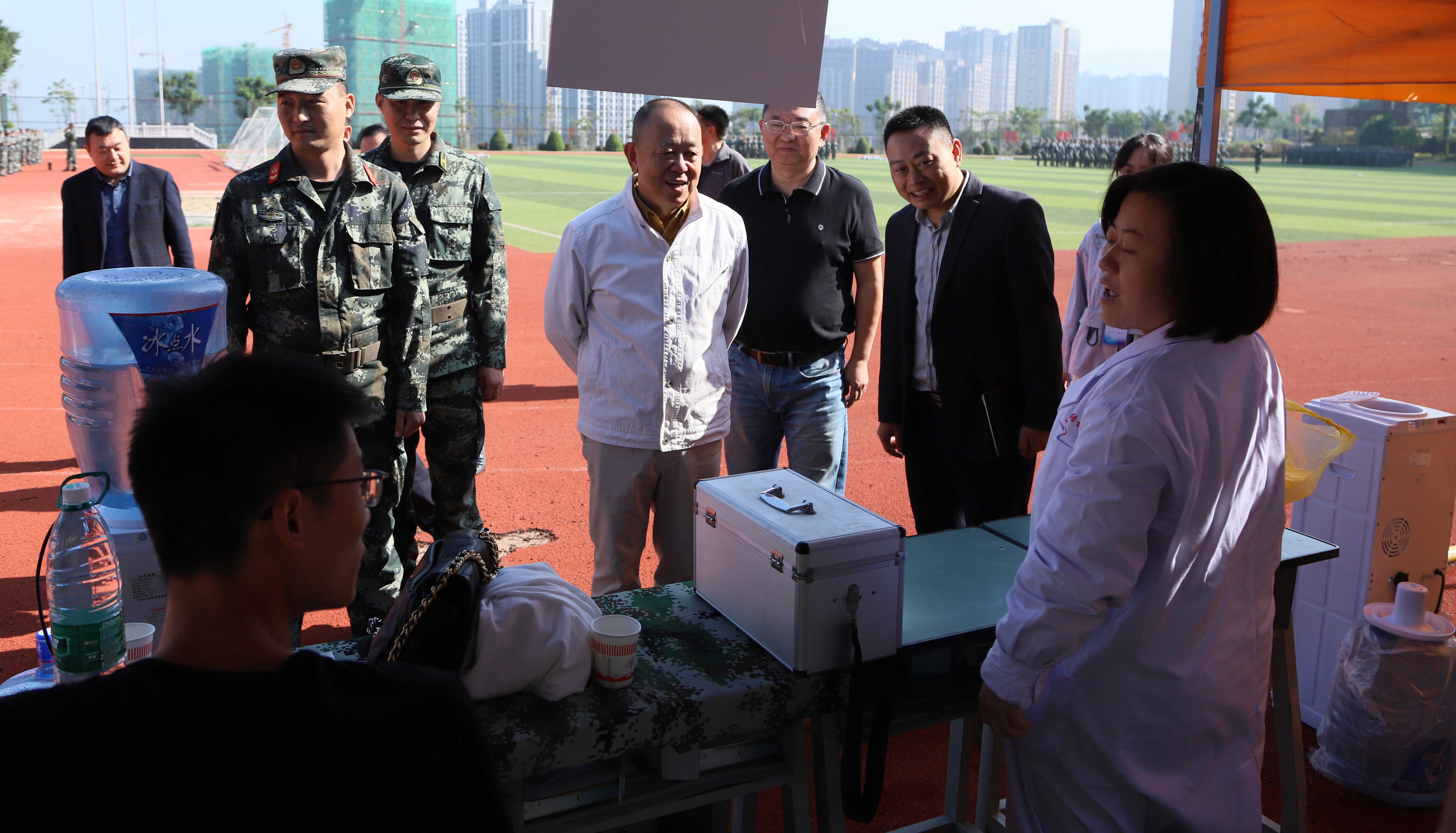 校领导一行先后对南苑、西苑二个校区近期军训工作开展情况进行了指导检查。看望慰问了承训的教官和参训的师生,观看了新生的训练。详细了解了今年参训学生的身体状况,亲切询问了未能参训的学生的原因和安排,并与他们就学习、生活中的问题作了亲切的交谈,嘱咐他们要听从指挥、遵守纪律,在刻苦训练中磨练坚韧意志。同时,嘱咐工作人员和志愿者要做好封闭管理期间的后勤保障工作,为军训工作的顺利展开保驾护航。