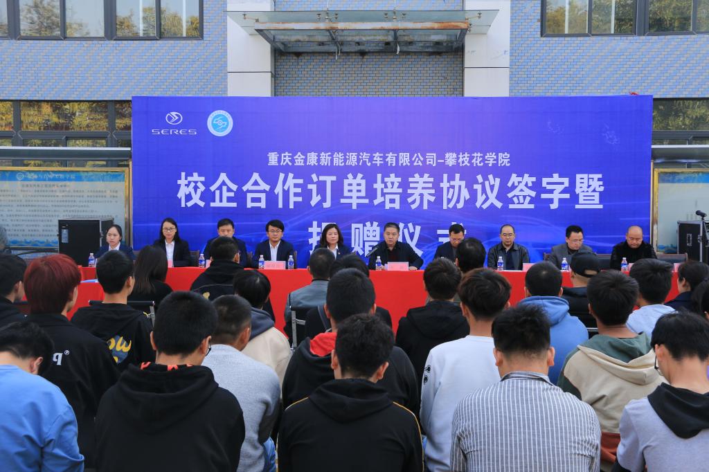 11月29日,威尼斯官网与重庆金康新能源汽车有限公司校企合作订单培养协议签字暨捐赠仪式在交通与汽车工程学院实践教学中心举行。重庆金康新能源汽车有限公司人力资源部部长张碧英女士一行五人,副校长王兵出席仪式。教务处、招业处相关负责人,交汽学院领导班子成员,教职工代表和2020级汽车电子专业全体同学参加了本次仪式。