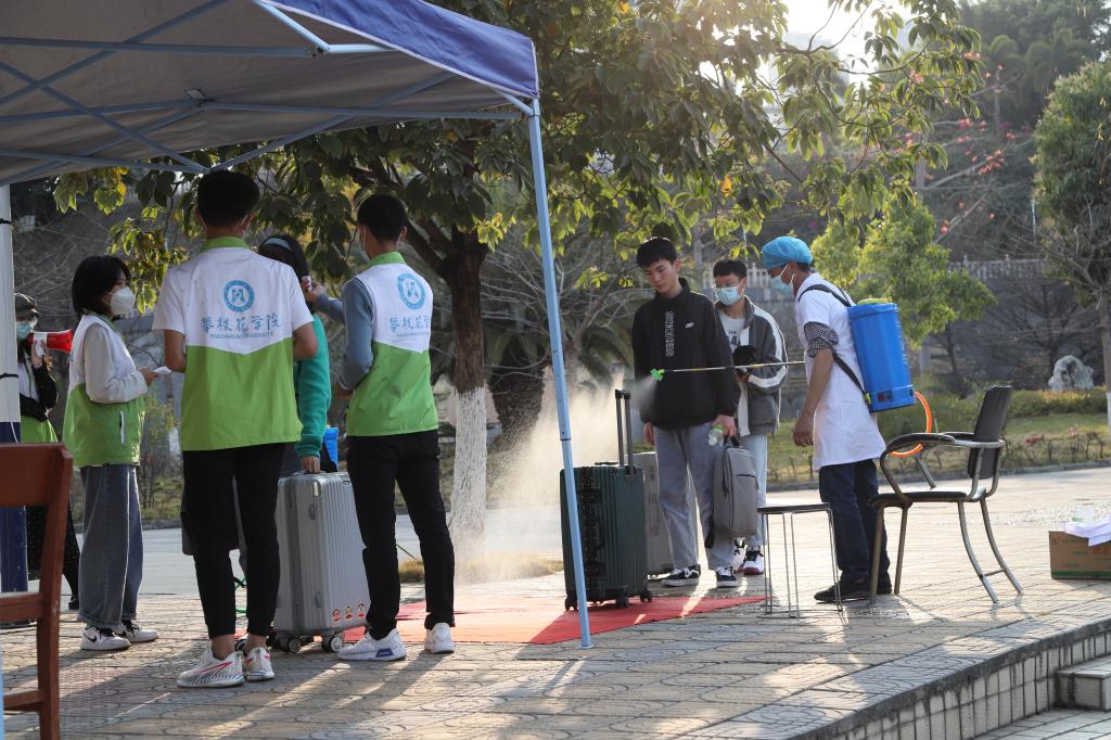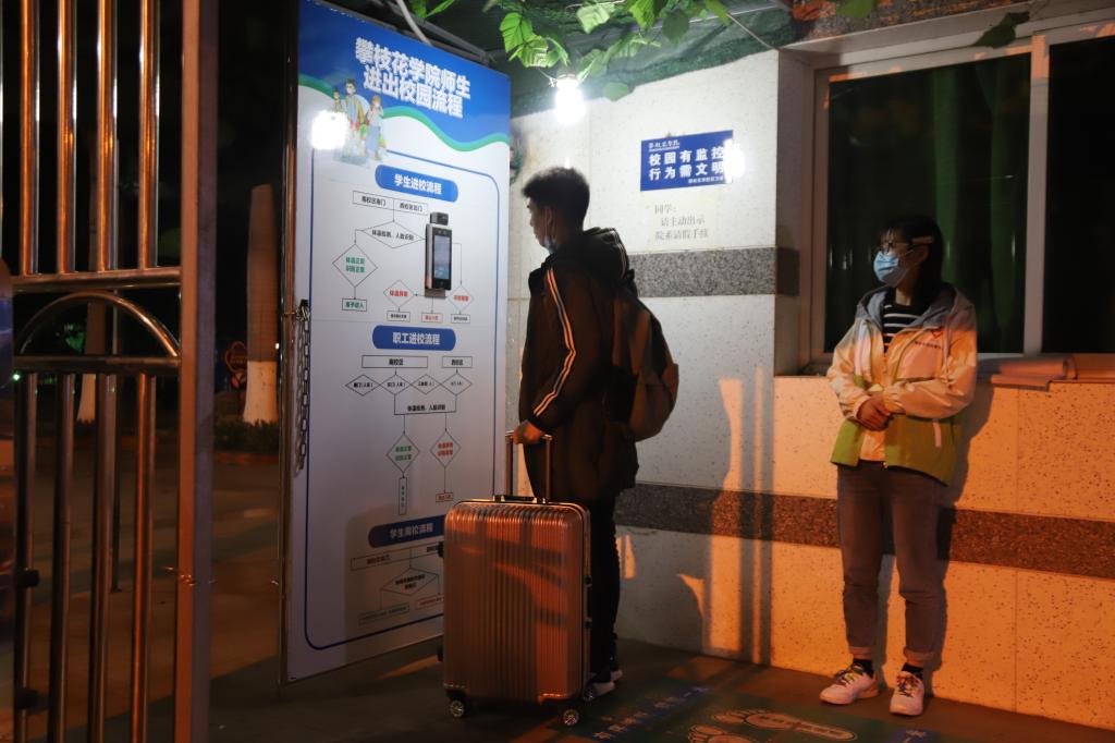 行李消杀,体温监测,人脸识别,分学院报到,返校申请书、健康码、行程码核查,凭“证”入公寓……通过精细把关,一位位攀大学子重返攀大校园。