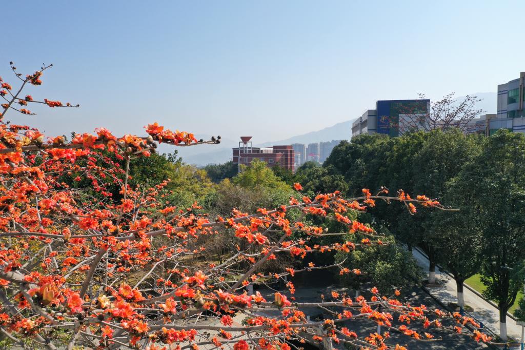 木棉花开红似火,静明湖畔春意浓。