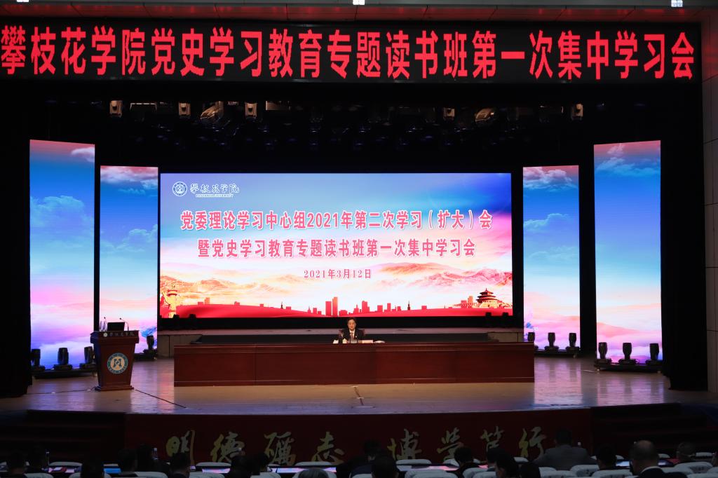 3月12日下午,学校党委中心组学习(扩大)会暨“学党史、强自律”读书班第一次集中学习会在会堂召开,传达学习全国、全省党史学习教育动员大会精神和《中共中央关于在全党开展党史学习教育的通知》《中共四川省委关于开展党史学习教育的实施意见》精神,安排部署学校党史学习教育工作,围绕党史学习教育对学校新学期相关工作进行了安排。学校党委书记、党史学习教育领导小组组长王斌主持会议并讲话。全体校领导,全校副县级及以上干部、各单位助理、各基层党支部书记参加会议。