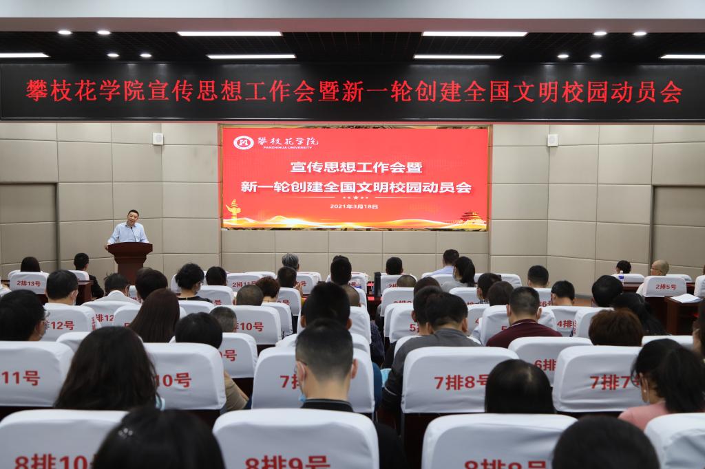 会议指出,做好宣传思想工作和新一轮文明校园创建要实现“三个结合”:一是将宣传思想工作与党史学习教育有机结合。以青年为重点,将新形势下宣传思想工作的使命任务和党史学习教育的根本要求相统一,落实落细。二是将文明校园建设与应用型一流大学建设有机结合。以培育文明细胞为重要抓手,提升校园文明和文化软实力,有利于促进应用型一流大学建设硬实力的提升。三是将“自律攀大人”文化品牌建设与和谐美丽幸福攀大的建设有机结合。通过多形式多载体,激励师生由思想上的“自警自省”,促成行为上的“自觉自愿”,实现成长中的“自强自信”,弘扬主流价值观,为建成和谐美丽幸福攀大打下坚实基础。