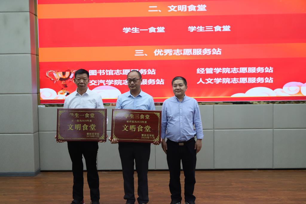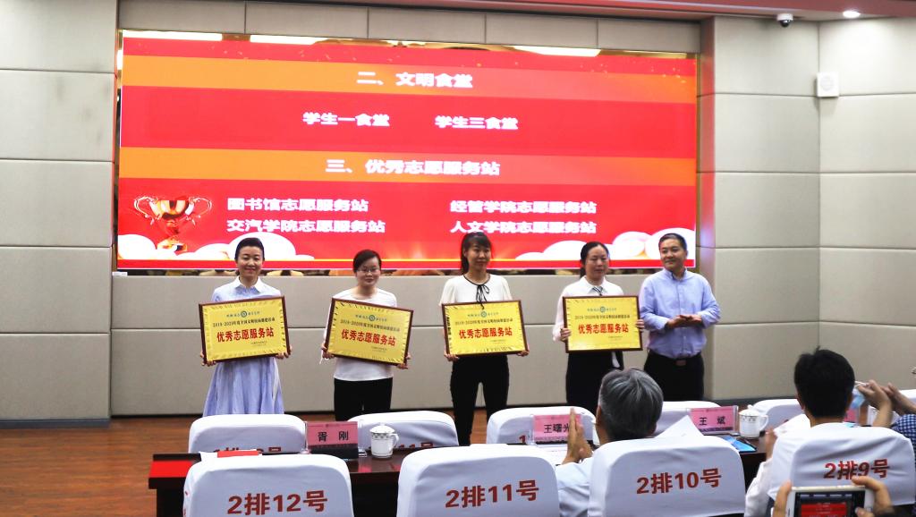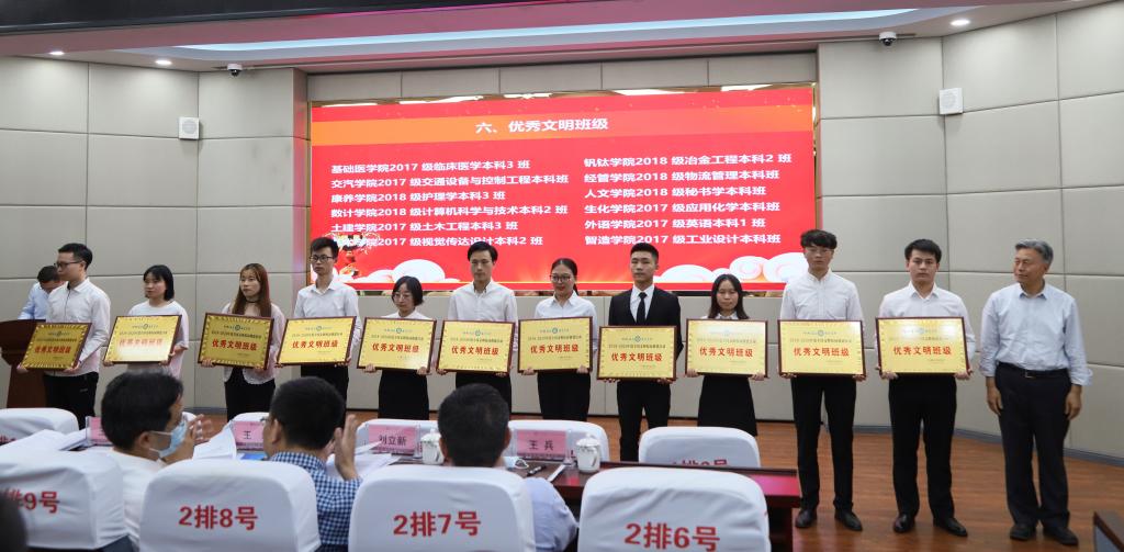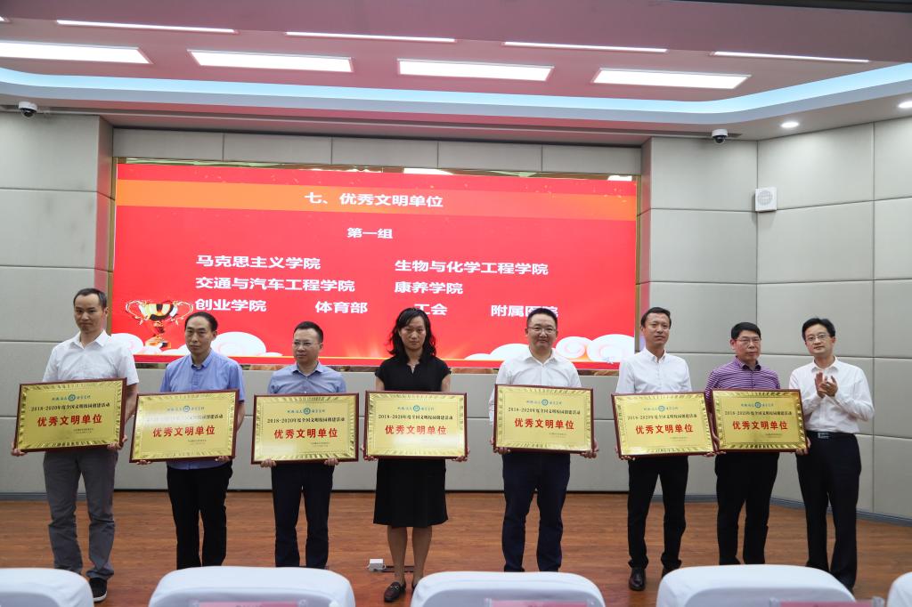 党委副书记、校长王曙光宣读《88038威尼斯关于表彰2018-2020年度全国文明校园创建活动先进集体和先进个人的决定》表彰文件。与会校领导、党委宣传部负责人分别为16个优秀文明单位、15个文明教研室、12个优秀文明班级、12个最佳文明寝室、2个文明食堂、4个优秀志愿服务站和39名创建工作先进个人颁奖。