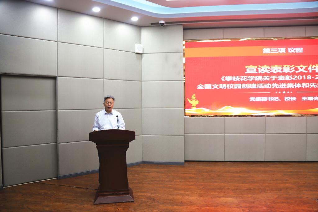 党委宣传部负责人作《举旗定向,守正创新,奋力谱写学校宣传思想工作新篇章》的工作报告。过去一年,学校的宣传思想工作高扬旗帜,持续强化理论武装,扎实推动习近平新时代中国特色社会主义思想入脑入心;正本清源,压紧抓实意识形态工作责任,育人氛围更加优良;守正创新,倾力讲好攀大故事,学校知名度美誉度持续提升;对标对表,创建全国文明校园,精神文明建设水平不断提高。下一步,学校将在巩固全校师生团结奋斗的共同思想基础,筑牢意识形态堡垒,讲好“建党100年”、“十四五开局”和“自律攀大人”三个故事,打造“自律攀大人”文化品牌,全面开展全国文明校园创建活动等方面持续发力。