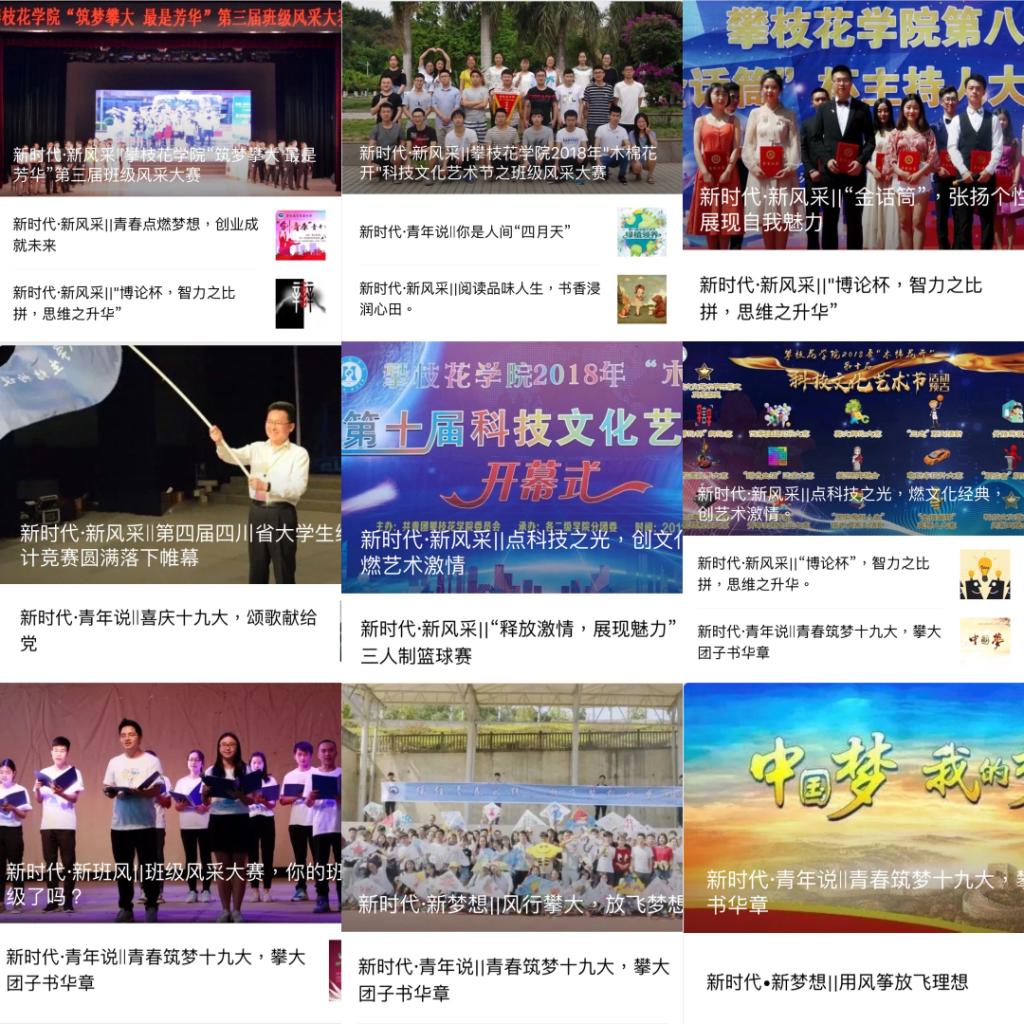 线上线下引领统筹推进,抓好阵地建设。以“青春攀大”官方微信平台为基础,做好主题宣传,丰富内容供给,打造青年学生喜闻乐见、易于接受的的文化产品;以“易班”平台为中心,打造网络思想政治教育综合体。“青春攀大”粉丝量已突破20000余人、累计发送图文消息达2000余条,“易班工作中心”两次获得“四川省优秀易班工作站”称号。以三线建设、大学生成长成才为主题,坚持举办“阳光讲坛”“阳光微讲坛”系列讲座100余场。