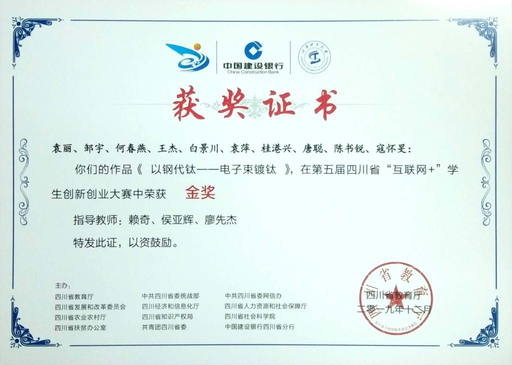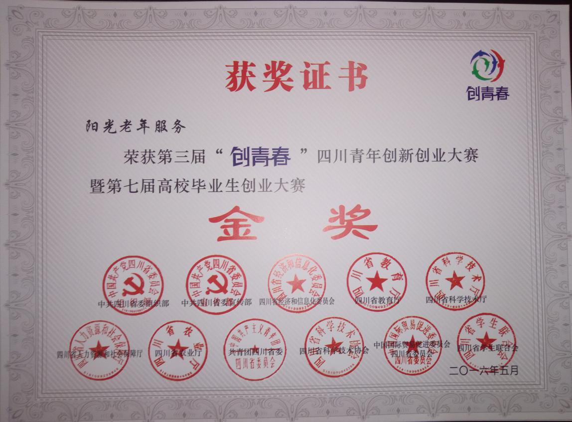 威尼斯官网第三届“创青春”四川青年创新创业大赛获奖证书