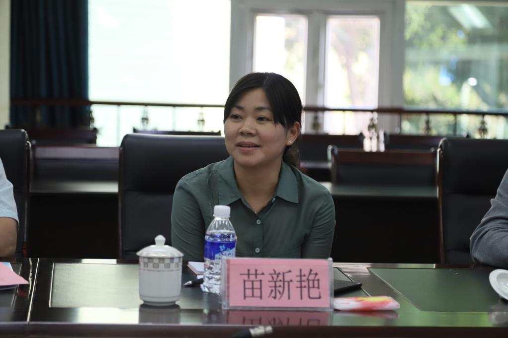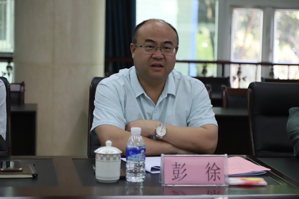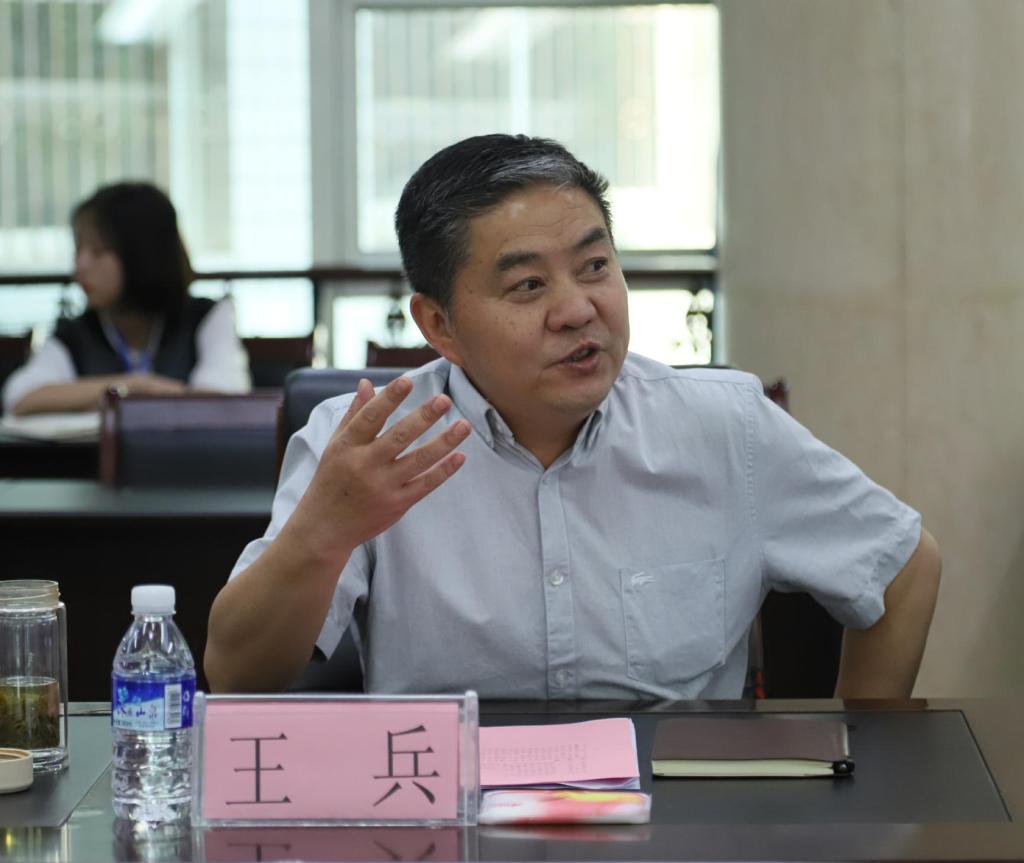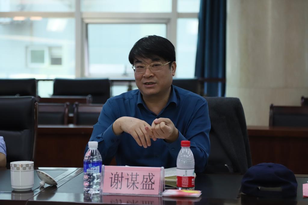 参观结束,双方在办公楼3楼会议室开展座谈交流,会议由王兵主持。王兵代表学校向谢谋盛一行人表示欢迎,介绍了学校荣誉、师生概况和学校特色等基本情况。