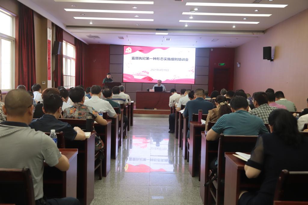4月15日,一场特别解读加答疑的《监督执纪第一种形态实施细则》培训在办公楼四楼附楼会议室召开,校领导、学校中层正职及主持工作副职、纪委机关全体人员共68人参加会议。